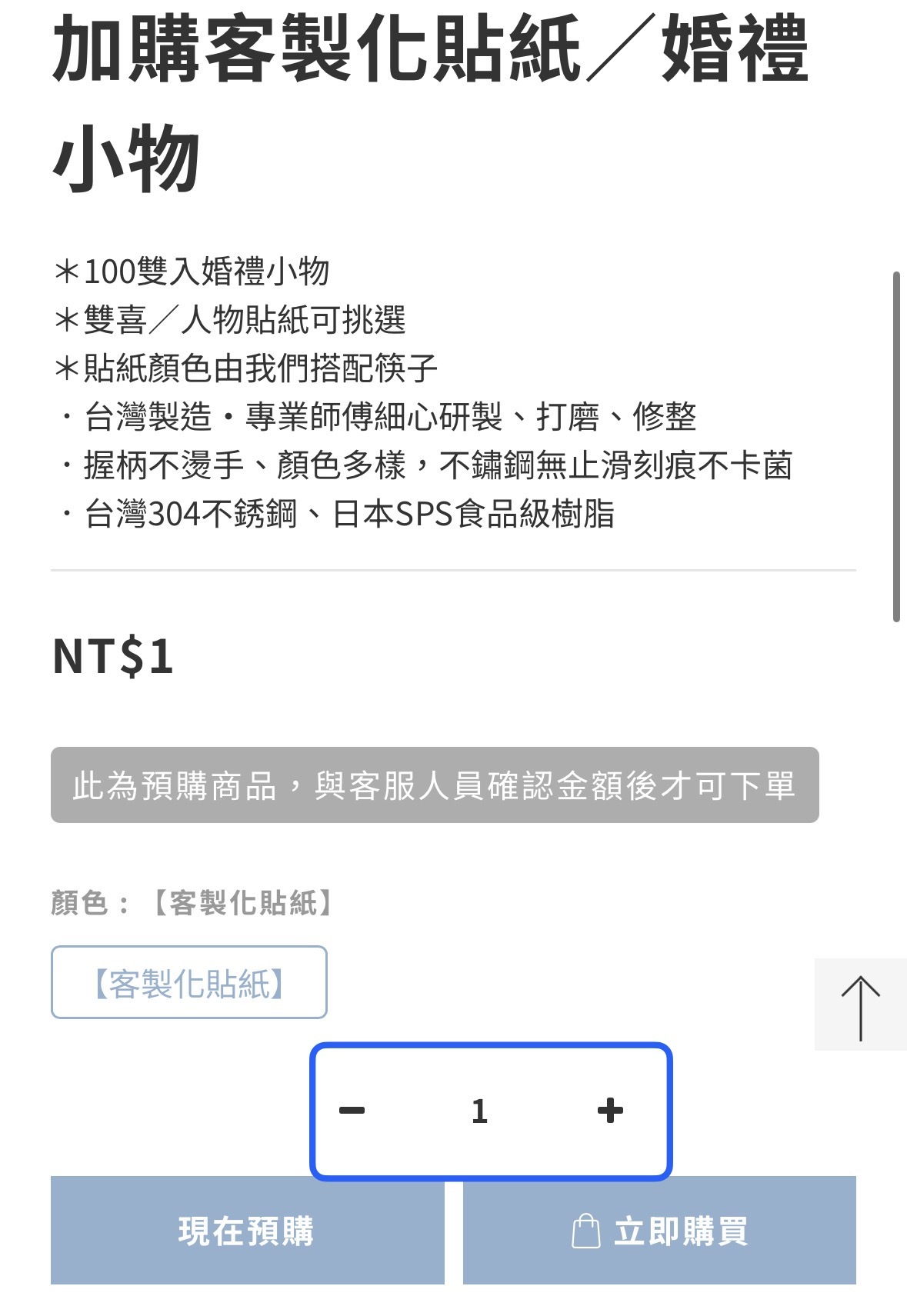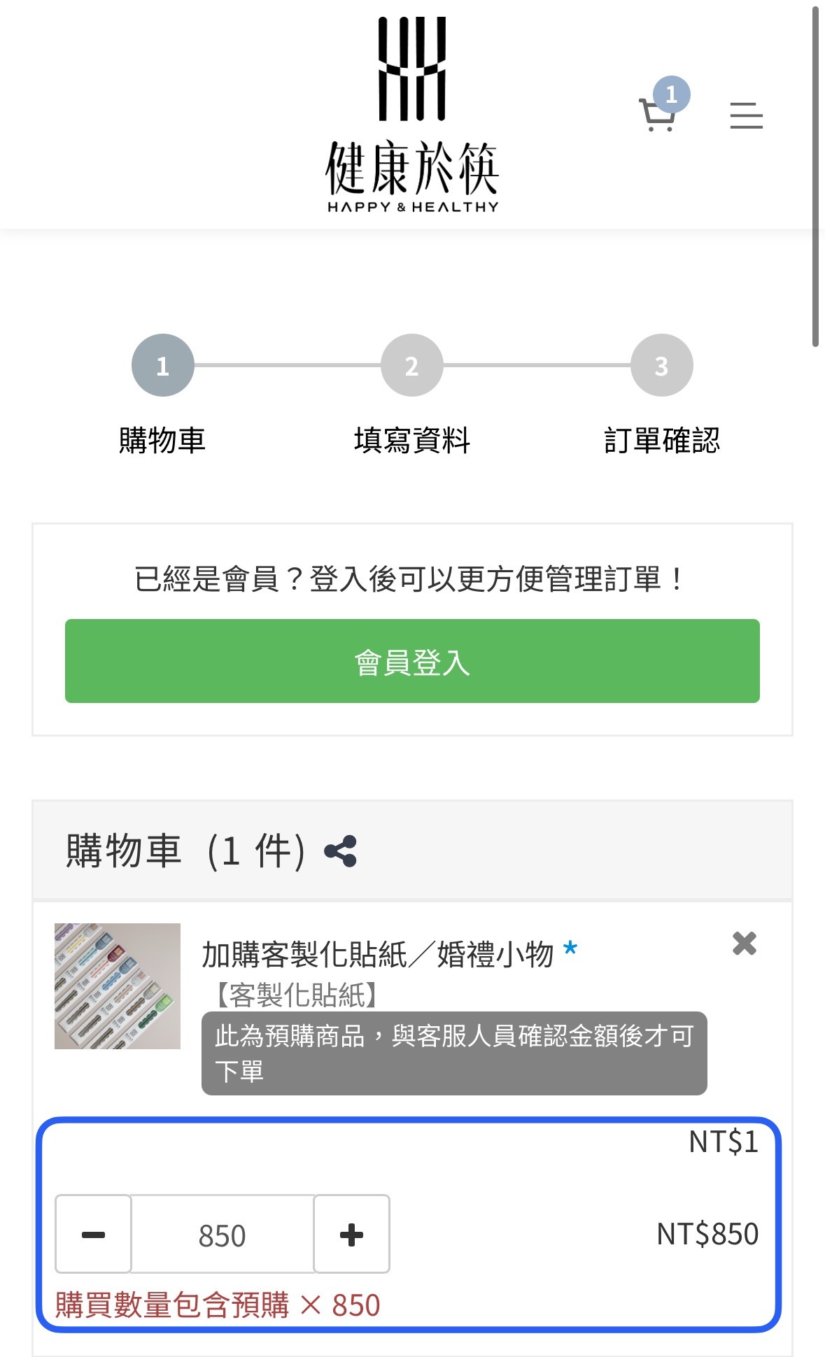 每筆訂單限購 -1 件